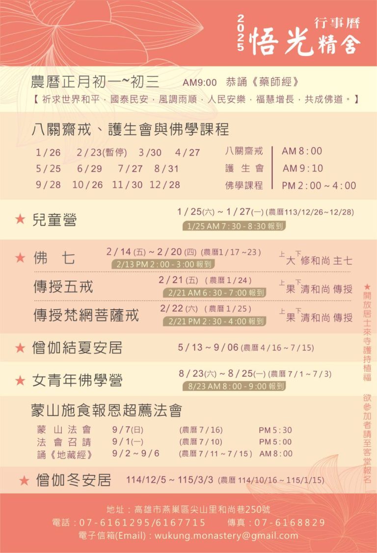 本寺開山住持上悟下光和尚尼,於民國113年7月18日(農曆6月13日),早上10點06分吉辰,於大眾念佛聲中,正念分明,安詳示寂。