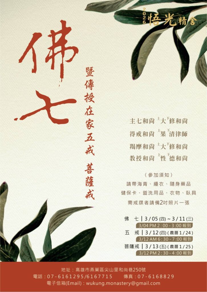 ※報名表填寫完可直接回傳至本寺電子信箱 :Email:wukung.monastery@gmail.com